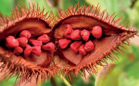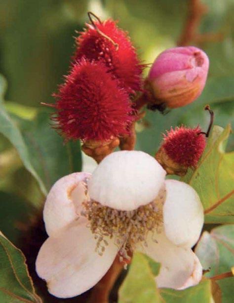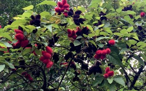 rambutanu. V období zralosti lusky pukají, objevují se dužnaté míšky a v každém z nich se nachází okolo 50 jasně červených semen.