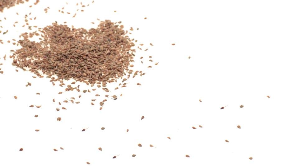2. Ajowan a římský kmín pražte nasucho v pánvi po dobu asi 30 vteřin, vyjměte a v mlýnku na koření nebo ve hmoždíři vytvořte jemný prášek. Smíchejte jej se skořicí, mletým muškátovým oříškem a s chili.