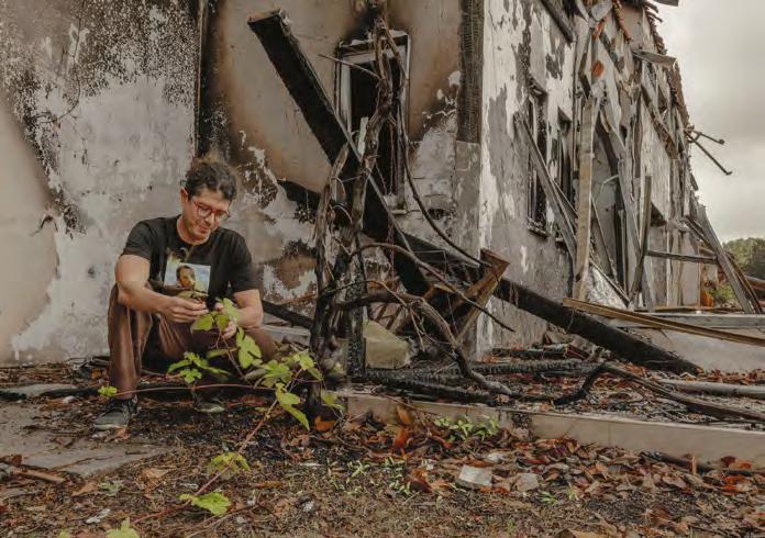 Juval v troskách svého domova v kibucu Be‘eri. V tu chvíli už měl zpět svoji maminku a část příbuzných. Ale zároveň věděl, že jeho otec je po smrti. Foto: osobní archiv, prosinec 2023.