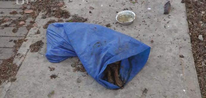 V době naší cesty do Be‘eri už byla těla lidí odvezena. Na chodníku před jedním z domů leží modrý plastový pytel a z něj trčí vedle sebe „složené“ tlapky. Pes. (Mstili se i na zvířatech.) Vidím rekvizity, které teď jsou jen depresivní připomínkou zmizelého světa. Dětské šlapací autíčko, stolek s popelníkem, pohozená teniska…