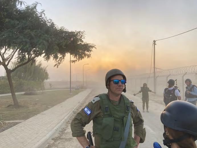 Náš podivný autokar, plný „turistů“ v helmách s nápisem PRESS, vyjížděl z Netivot, menšího města 10 kilometrů od hranic, odkud zamířil na západ. Uprostřed polí se právě rozmisťují izraelské jednotky. Míjíme eukalyptový háj. Půda a listí do výšky asi pěti metrů dočerna spálené, vršky stromů zkáze unikly. Mezi tím vším vraky aut. Tady povraždili islamisti účastníky hudebního festivalu. Odbočujeme a po delším čekání vjíždíme do Be‘eri. Zdržení je způsobeno silným provozem vojenské techniky. Roku 2022 byl počet obyvatel kibucu 1071, teď nula, ale pohybují se tu stovky vojáků. Míříme po úzké cestě do západního koutu vesnice.