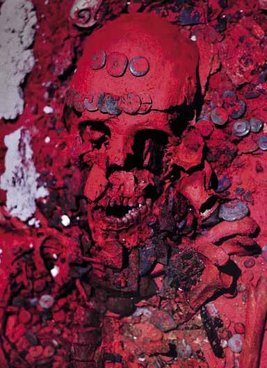 S lidskými ostatky zbarvenými umělým zásahem do červena se setkáváme na mnoha místech světa. Tento pohřební