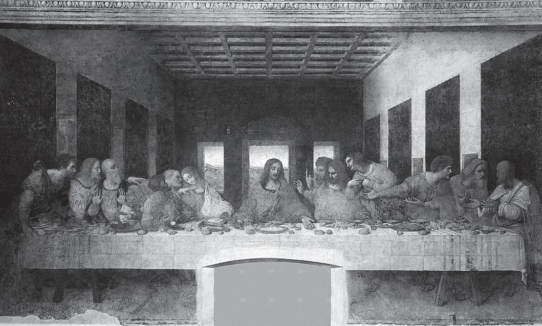 Poslední večeře zdobí refektář milánského konventu Santa Maria delle Grazie. Mistr Leonardo ji maloval v letech 1495 až 1498. Z neznámých důvodů nenanášel barvy na čerstvou vápennou omítku, jak tehdy bylo zvykem, ale zvolil suchý podklad. Nebylo to nejšťastnější řešení. Nástěnná malba již krátce po svém vzniku začala praskat.