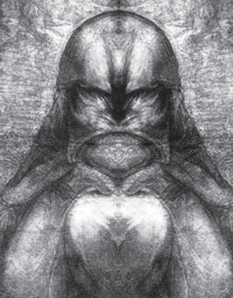 hledí na rameno jeho matky. Přesně tam přiložené zrcadlo ukáže děsivou nepozemskou bytost jako vystřiženou z Hvězdných válek. Podle zmíněné skupiny je to „starozákonní bůh Jahve, který ochraňuje duši před tělesnými neřestmi a na hlavě nosí vatikánskou korunu“. Jak k tomu podivnému závěru došli, experti neuvedli. Logiku v něm hledám marně.