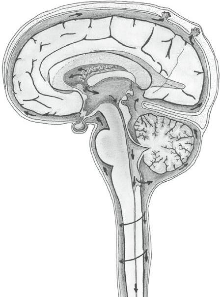 Obr. 2.23 B Schéma cirkulace mozkomíšního moku