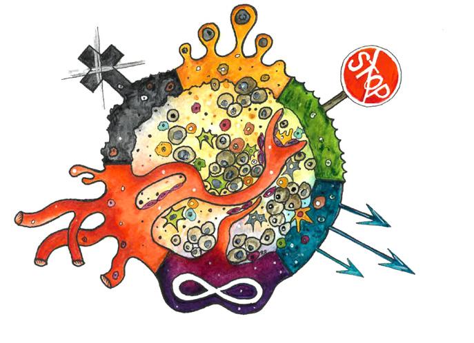 Obr. 2.1 Hallmarks of cancer, návrh z roku 2000 (autorkou obrázku je MUDr. Rastislava Rosinská)