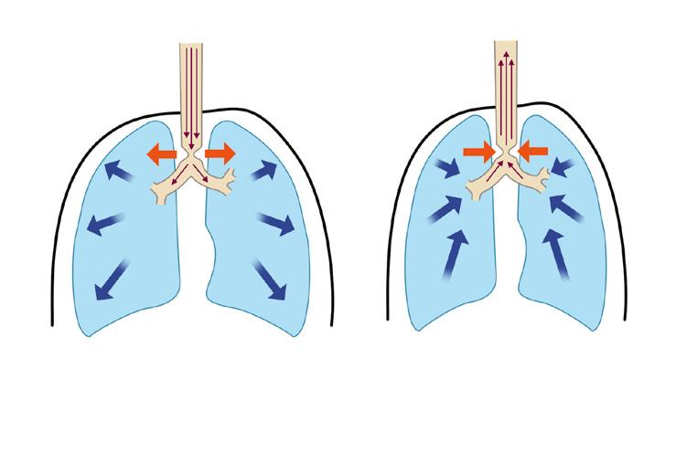 Většina aspirovaných cizích těles se dostává do bronchů, o něco častěji pravostranných. Převážná většina jich je rtg nekontrastních, a proto se musíme spoléhat na nepřímé známky. Sledujeme průběh bronchů, zda nedochází k přerušení sloupce vzduchu v jejich lumen. V plicním parenchymu se obstrukce nejčastěji projeví hyperinflací způsobenou záklopkovým mechanismem (obr. 5.5). Pokud je bronchus uzavřen kompletně, dochází postupně ke snížení objemu (atelektáza) nebo vznikají zánětlivé změny v plicním parenchymu. Hyperinflace se zvýrazní na snímku ve výdechu, který by měl být při podezření na aspiraci cizího tělesa (pokud je to možné) doplněn. I tak zůstává citlivost rtg vyšetření nízká (kolem 70 %). Naproti tomu CT vyšetření má téměř 100% senzitivitu. Umožňuje přímé zobrazení cizího tělesa i nepřímých známek aspirace a navigaci následné bronchoskopie. CT vyšetření v této indikaci lze provést v nízkodávkovém režimu.