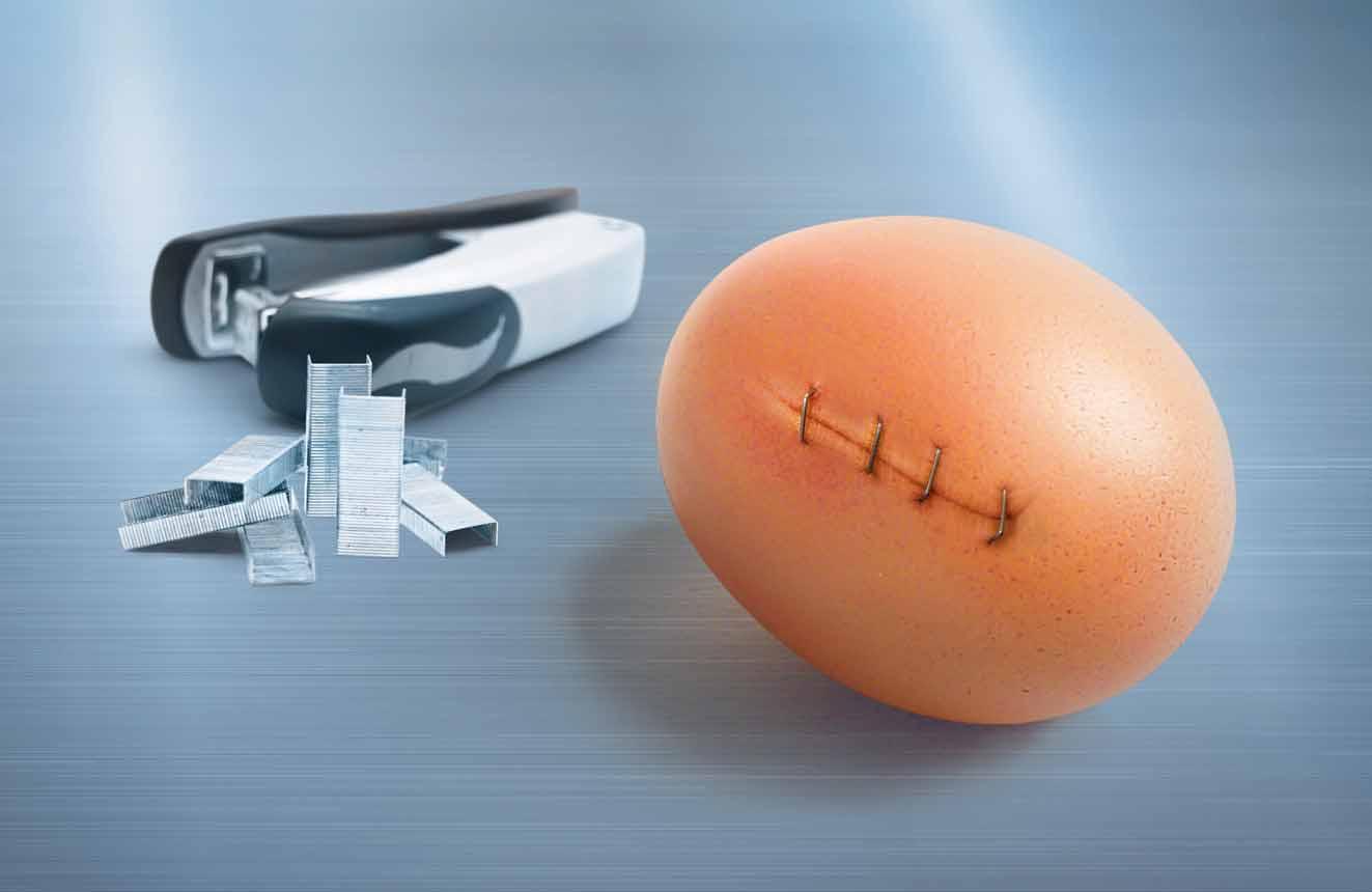 V případě protržení rukavic během operačního výkonu je třeba poškozené rukavice mimo operační pole sundat a provést hygienickou dezinfekci rukou (a pokud je to nutné, tak i mechanické umytí). Navléknutí nových sterilních rukavic se děje mimo operační pole.