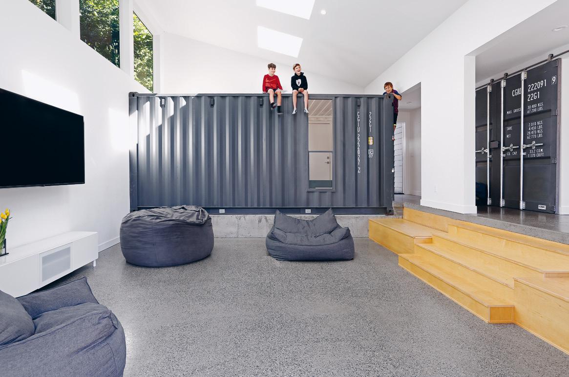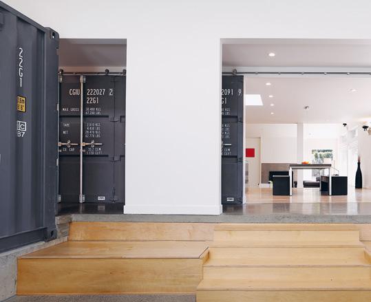 ke svému domu z padesátých let 20. století a nadchla je myšlenka využití nákladních kontejnerů. Tým architektů se rozhodl nakládat s kontejnery spíše jako s nalezenými objekty – téměř výtvarnými díly. Kontejnery však slouží nejen jako definující estetický prvek, ale jsou především funkční – široké posuvné dveře z kontejneru dokážou rozdělit obytný prostor ve chvíli, kdy jeho obyvatelé potřebují vytvořit zvukovou či sociální bariéru. Zatímco v interiérovém kontejneru se nachází koupelna a veranda, kontejner v exteriéru slouží jako místo k odpočinku či pracovní prostor.