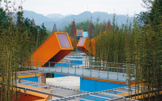 Čínský horský kemp Čchi-jün je rozsáhlý park určený pro milovníky dobrodružství v přírodě a extrémních sportů. Architekti studia LOT-EK navrhli zařízení pro veřejnost uprostřed jeho nedotčené přírody. Základ jednotlivých budov tvoří diagonálně rozříznuté nákladní kontejnery. Propojováním, zrcadlením, náklonem a kombinováním kontejnerů se architektům podařilo splnit různé požadavky a nároky na jejich využití. Typově rozmanité prostory, včetně vstupu, restaurace a přístupu k jezeru po molu, byly pečlivě rozmístěny do krajiny a barevně zpracovány tak, aby byly v krajině snadno rozpoznatelné.