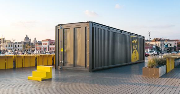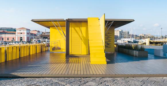 Přeměna 13metrového kontejneru v zónu pro občerstvení a místo setkávání ve městě je novou formou architektonického vyjádření, jež vychází z tvarů a typů budov v katánském přístavu. Jde o speciálně navržený prvek, který připomíná otevřenou krabici a otevírá se tak životu. Je složen z pohyblivých částí umožňujících nejrůznější uspořádání. Dva velké panely zvedají hydraulické písty a vytvářejí tak chráněné venkovní prostředí. Menší panel slouží jako výstavní plocha, zatímco další odkrývá schodiště vedoucí na horní terasu. Kompaktní design a žlutá barva propůjčují projektu ráz pevné solitérní stavby v přístavu.