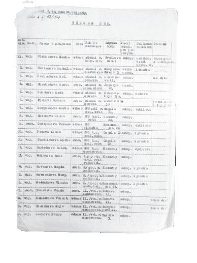lo velitelství čs. náhradního praporu seznam žen v jednotce zařazených. S je v tomto dokumentu uvedeno 106 žen, byť správně mělo být jen 104 žen. Nepřesnost spočívala v tom, že voj. Dočkalová a voj. Šlachetová byly od 2. čs. brigády odveleny zpět k NP teprve 15. února, nicméně ve jmenovaném seznamu NP již jejich jména figurují.