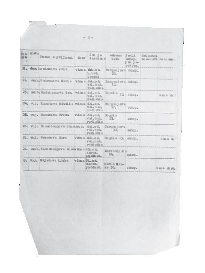 2 Karel Hudzieczek, uváděn též Hudeček, zahynul dne 11. března 1943 v průběhu evakuace po zranění u Sokolova (útok německého letounu na sanitní automobil). Jeho manželka, občanka SSSR, byla odvedena 18. prosince 1943 jako Hudečková. voj. Belláková Hedvika – štábní rota, osvěta voj. Bergmannová Marie – SPO, cykl. rota, spoj. četa svob. Biněvská Vanda – 2. prapor, ošetřovatelka svob. Čerepanová Tereza – SPO, písařka voj. Dočkalová Maja – 2. prapor, ošetřovatelka voj. Fialová Božena – štábní rota, osvěta voj. Hudečková Anastázie2 – SPO, tankový prapor, ošetřovna voj. Kadaňková Vlasta – 1. prapor, radiotelegrafistka voj. Kováčová Magda – 1. prapor, radiotelegrafistka voj. Kurucová Natalie – dělostřelecký oddíl, radistka voj. Ljachová Marie – 2. prapor, ošetřovatelka des. Lošťáková Jana – dělostřelecký oddíl, účetní voj. Maletová Anna – 1. prapor, radiotelegrafistka voj. Meierová Ljuba3 – PL oddíl, zdrav. poddůstojník voj. Němečková Valentina – 2. prapor, ošetřovatelka voj. Novosadová Margita – 1. prapor, radiotelegrafistka voj. Pavlenková Natalie – štábní rota, pomocný úřad voj. Pešová Irena4 – SPO, tankový prapor svob. Petruňová Marie – dělostřelecký oddíl, radistka voj. Raweková Gertruda – dělostřelecký oddíl, radistka voj. Rosenbaumová Hana – dělostřelecký oddíl, radistka svob. Rufeisenová Terezie – dělostřelecký oddíl, radistka voj. Sotáková Helena – SPO, cykl. rota, spoj. četa voj. Steinerová Marie – štábní rota, hospodářská správa voj. Studničková Lydie – SPO, tankový prapor, spoj. četa voj. Šlachetová Herta – štábní rota, u náčelníka štábu voj. Weberová Sára – dělostřelecký oddíl, radistka svob. Wechsbergová Richarda – PL oddíl, zdrav. poddůstojník voj. Winterová Ludmila – štábní rota, ošetřovatelka