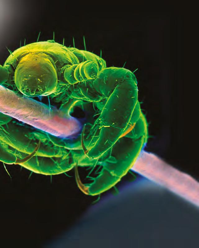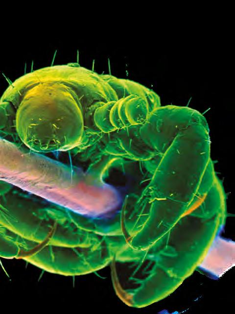 Elektronový mikroskop umožňuje biologům zkoumat organismy, jako je například tato veš, do nejmenších detailů. Samotný mikroskop je výsledkem vědeckého průlomu ve studiu subatomárních částic (viz str. 24–25).