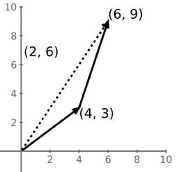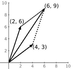 Například zrychlení způsobená dvěma silami v předchozím číslech, [4, 3] a [2, 6]. Jejich sečtení je totéž jako sečtení (umístěných svisle na sebou, do sloupce). S šipkami si nemusíte
