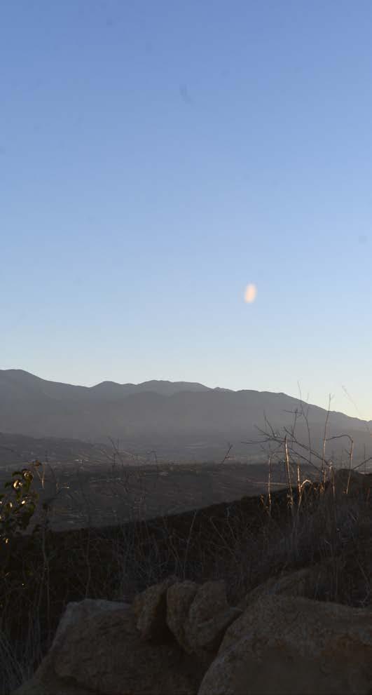 Slunce se zrovna zvedlo nad pohořím Sierra Tarahumara. Daleko před námi se na vršku stolové hory tyčily obří kameny podobné těm na Velikonočních ostrovech a v pozadí za nimi zářily sněhem pokryté hory.
