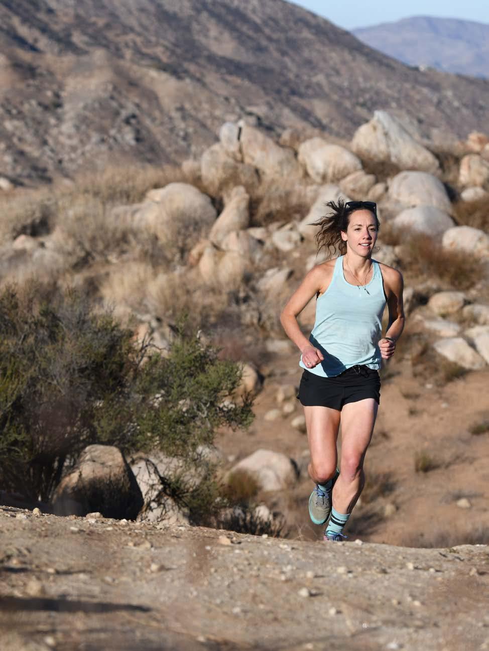 Stojí nad Jennou Crawfordovou, třicetiletou běžkyní maratonů a přespolních běhů, která zvládne přes 2000 tréninkových mil ročně. Jenna je tak fit, že si ji jako modelku vybraly Nike, New Balance a Asics, a je tak rychlá, že necelé dva měsíce po našem setkání v parku vyhrála půlmaraton Rose Bowl.