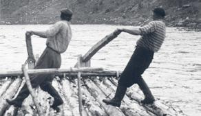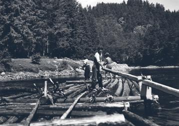 Snímek zachycuje vorový pramen pod Červenou v létě roku 1941. Protože záhy přijdou peřeje Červenských proudů, stojí jeden plavec (na fotografii v popředí) i u pomocného vesla ve slabejch