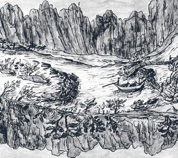 David Altmann z Eidenburgu to sice dotáhl až na titul představeného malířského cechu, výrazné dílo však po něm nezůstalo. Jeho nákres Vltavy z Prahy do Svatojánských proudů by se dal spíše zařadit do kategorie naivního umění, a to zejména tím, jak zobrazil levý břeh. Abychom si jej mohli prohlédnout, musíme kresbu obrátit. Ta však i přesto zůstává zajímavým dokumentem. Zde reprodukujeme úsek od Štěchovic ke skupině ostrovů pod Dolejším slapem. Zleva vidíme dva splazy, v příkrém svahu upravené smyky na spouštění dřeva k řece, způsob, který se užíval beze změny po staletí. Většina scének na řece patří svízelné dopravě lodí proti proudu s častým převážením koní z jednoho břehu na druhý
