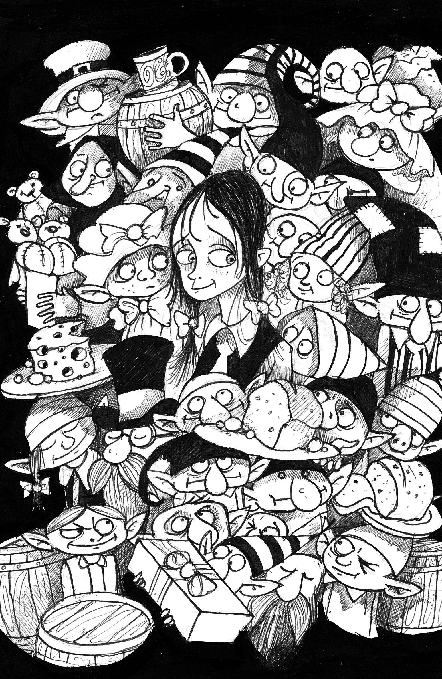 Svadba sa konala v posledný deň zimných prázdnin. Deň predtým, ako som mala nastúpiť do elfhelmskej školy. Bolo fajn, že som sa mohla tešiť na svadbu, pretože to odpútalo moje myšlienky od blížiaceho sa vyučovania. Väčšina Elfhelmu prišla v ten deň do vidieckej siene. A dokonca aj niektoré bytosti zo Zalesnených hôr, medzi nimi aj Pravdovravná víla so svojím vílím kamarátom Klamárom Vilom, ktorý povedal, že sa mu veľmi páčia moje uši, čo ma trochu znepokojilo. Boli tam aj soby Vianočného otca. Blitzen musel sľúbiť, že počas obradu nespraví veľkú potrebu na podlahu, a svoj sľub skutočne dodržal. Prvý raz som videla drúlhudliarov. O vílach a elfoch som vedela už v časoch, keď som žila v Londýne, no o drúlhudliaroch som dosiaľ nič netušila. Zrejme ich nebolo veľa a vyskytovali sa len na východ od Elfhelmu. Nemali mená a neboli mužského ani ženského pohlavia. Boli to jed-