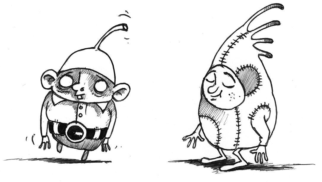 noducho rôznofarebné stvorenia. Jedno z nich žiarilo nažlto, bolo nízke a bucľaté a po celý čas sa usmievalo a pospevovalo si. Na svadbe bol aj Kapitán Sadzúr a jazykom zbieral z podlahy odrobinky jedál.