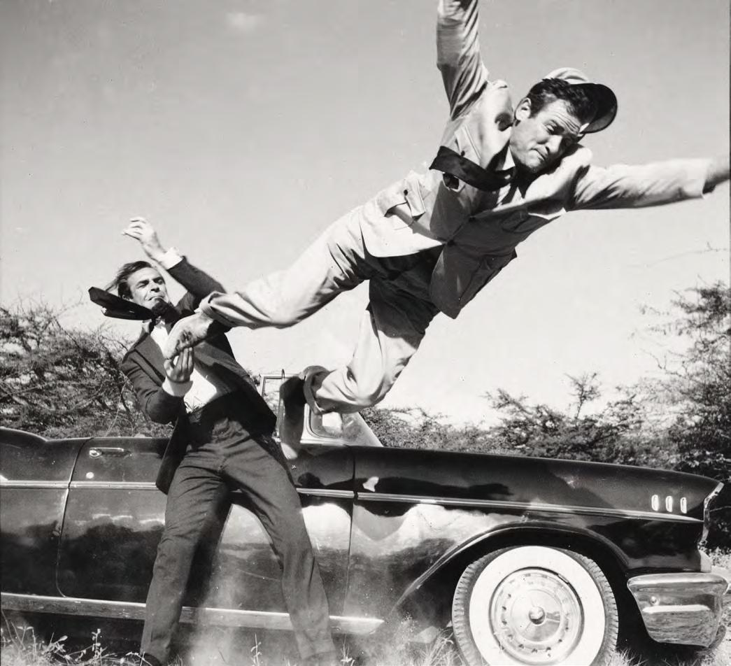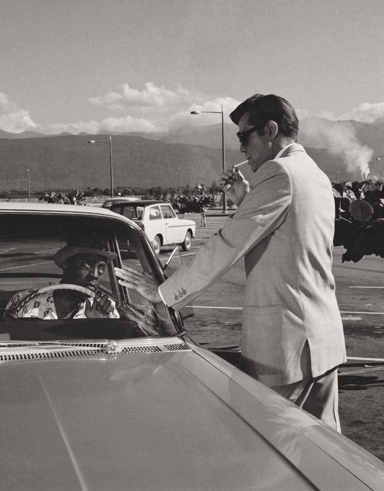 Agent CIA Felix Leiter (Jack Lord), jeho místní kontakt Quarrel (John Kitzmiller), Chevrolet Impala a v pozadí Austin A40 Farina na zřídka vídaném snímku