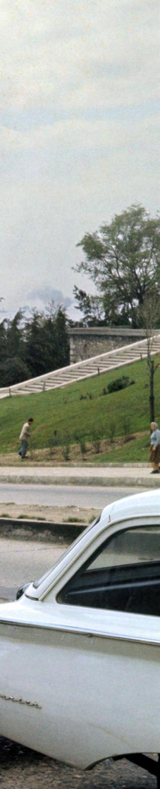 Vpravo: Zřídka vídaný záběr, na němž je zachycen Bondův příjezd do centrály MI6 ve městě a jeho setkání s vedoucím stanice (Ali Kerim Bey). Rolls-Royce je stříbrný Wraith z konce 50. let