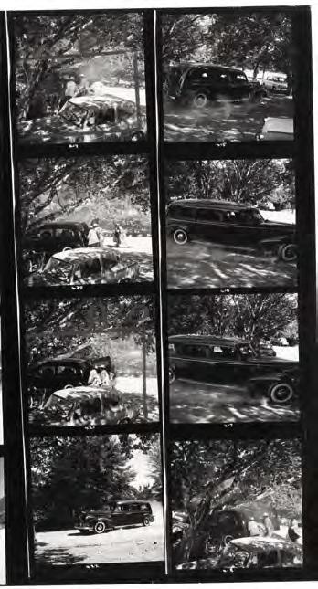 Vpravo: Padoušský vůz LaSalle se záhadně promění v Humber, když tento pohřebák míří na svůj vlastní pohřeb. Protější strana: Dříve nepublikovaný archivní záběr