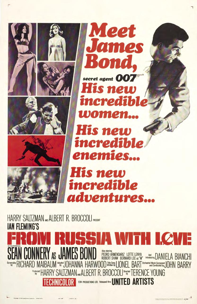 Přesně o měsíc později využila mateřská společnost Danjaq bondovské produkční společnosti možnosti natočit pokračování. Jednalo se o moudrý krok. Pro druhou adaptaci na velkém plátně zvolili pátý z původně dvanáctidílné série románů Iana Fleminga (existovaly dvě sbírky povídek), Srdečné pozdravy z Ruska . Co se týče cestovního itineráře agenta 007, v tomto příběhu nedominovala auta, nýbrž vlaky, zejména jeden a možná ten nejslavnější ze všech: Orient Express. Bondův souboj – a vztah – s vrahem ze SPECTRE Donaldem „Redem“ Grantem (Robert Shaw) a bondovo získání si Tatiany Romanové (Daniela Bianchi) je jedním z určujících motivů filmu, který míří k rozuzlení se stejnou jistotou, jakou vlak projíždí východní Evropou. Je to sekvence, jež v sobě zahrnuje mnohé z toho, co dělalo Bonda tak výjimečným, zejména v době, kdy si tato postava teprve hledala své místo v kinematografii: Neskutečný půvab kontinentálního cestování, neobvyklou fyzickou stránku bojových scén a bezohlednost, která je základním rysem nejen protivníka, ale i hlavního hrdiny filmu. Bond, jak se rychle dozvíme, nemá absolutně žádný problém s tím, aby si ušpinil ruce. Automobiloví nadšenci si ve filmu Srdečné pozdravy z Ruska přijdou na své. Bond si vychutnává oběd se slečnou Trench, když ho raná verze