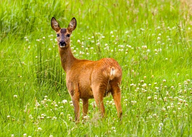 VÍTE, ŽE…? Srnec obecný má dobře vyvinutý čich. Člověka dokáže vycítit na vzdálenost více než 300 metrů. Když se cítí ohrožený, rychle se několika skoky vrhne do úkrytu v hustém podrostu nebo ve křoví.