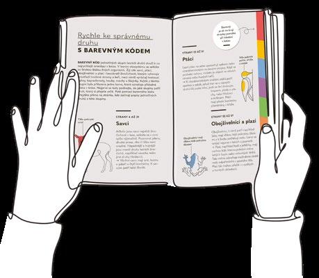 BAREVNÝ KÓD jednotlivých skupin lesních druhů slouží k co nejrychlejší orientaci v knize. V lesním ekosystému se setkáte se širokou škálou živých organismů. Žijí zde savci, ptáci, obojživelníci a plazi i bezobratlí živočichové, kterým vyhovuje prostředí tvořené stromy a keři, mezi nimiž vyrůstají kvetoucí byliny, kapraďorosty, houby, mechy a lišejníky. Každé z těchto skupin byla přiřazena jedna barva, která označuje příslušná místa v knize. Nejprve se tedy podívejte, do jaké skupiny patří druh, který si přejete určit. Poté pomocí barevného kódu přejděte přímo na stránku, kde začínají popisy jednotlivých druhů z této skupiny.