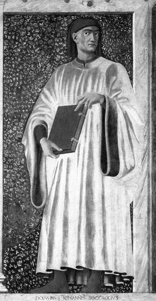 jiného typu. Na jednu stranu byl často defenzivní a jízlivý, jako by si vůči ostatním připadal znevýhodněně. Na stranu druhou štědřeji chválil než Petrarca. Boccaccio nikdy neváhal s vyznáním obdivu ke starým ani novým autorům. O samotném Petrarkovi pronesl krásná slova, stejně jako o Dantem (posmrtně), který zemřel v roce 1321. Stal se vlastně prvním seriózním dantovským badatelem: přednesl o něm sérii přednášek, napsal předmluvy k jeho dílu a sestavil jeho životopis. Petrarku nazval svým „obdivovaným učitelem, otcem a mistrem“ a řekl, že je tak význačný, že by měl být považován spíše za člověka antiky než novověku.21 To by se Petrarkovi jistě líbilo. Petrarkovo jméno znají v celé Evropě, pokračoval Boccaccio, dokonce i „v nejvzdálenějším koutě světa, v Anglii“.22