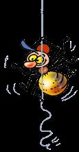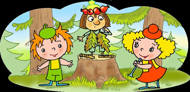 zdobenou červenými šípky, na sobě kabátek z barevných lístků a boty z jedlové kůry. „Jsem skřítek Podzimníček a někde jsem tu ztratil svoji harfičku.“