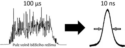 Obr. 5.3: Porovnání pulzu volně běžícího laseru a Q-spínaného pulzu