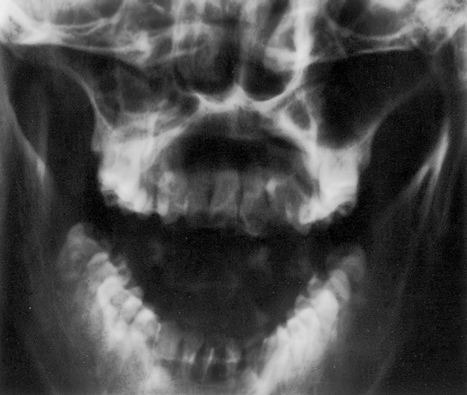 Horní čelist je tvarem, symetrií a velikostí normální Mineralizace a kostní struktura jsou pravidelné Zevní kontury kosti zachovány, bez patologických přerušení nebo linií projasnění Stav chrupu přiměřený, sanovaný