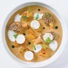Krémový sýr s pivním želé, pórkový krém, marinovaný losos, větrník plněný tatarákem 106