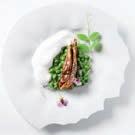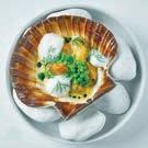 Slávky v rybím sosu s humrovým máslem a hráškem 92