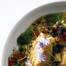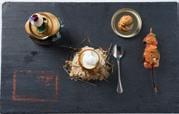 Prso z perličky s omáčkou z hroznového vína, smaženým vajíčkem, pečenými hrozny a croissantem 172