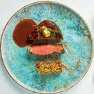 Maso z jelena sika s croissantem, kadeřávkem, mrkvovým pyré, omáčkou z husích jater a s želé z vína 206