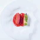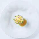 Pečený korálovec s telecím sosem, šalotkami v malinovém octě a sušenými žloutky 116