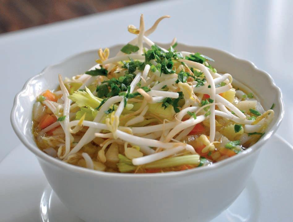 7. Do misek dáme nudle, zalijeme polévkou a dozdobíme bylinkami, výhonky, popř. masem, vejcem, tofu apod.
