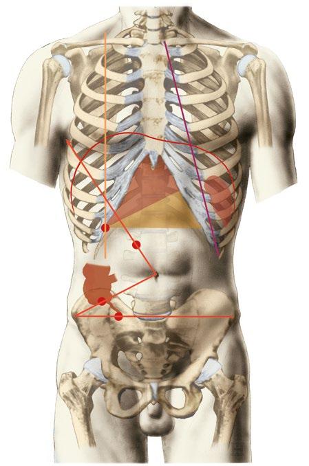 Prakticky všechny neurony míchy, které dostávají viscerální vstup, také dostávají vstup ze somatických struktur, včetně kůže, svalů a kloubů. Tato konvergence vstupů v míše zahrnuje jak viscerosomatické, tak visceroviscerální dráhy a je považována za základ integračního procesu. Nocicepční signály vznikající v některém z orgánů břišní dutiny tak mohou být projikovány do jiného místa těla. Korová reprezentace útrobních orgánů navíc není zcela přesná, hlavně v důsledku malé hustoty receptorů a nízké úrovně fyziologických signálů.