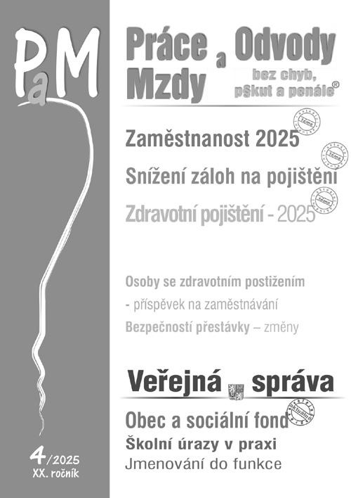 Do Poradce 7-8 připravujeme Zákon o daních z příjmů s komentářem. PaM 4/2025 obsahuje příspěvky Zákon o zaměstnanosti v číslech roku 2025 a Sleva na pojistném na důchodovém pojištění, DaÚ 4/2025 obsahuje Registrace plátce DPH, Optimalizace daně – odpisy, Třístranný obchod a DPH a 1000 řešení 3-4/2025 obsahuje Daňové výdaje, ZDP po novele.