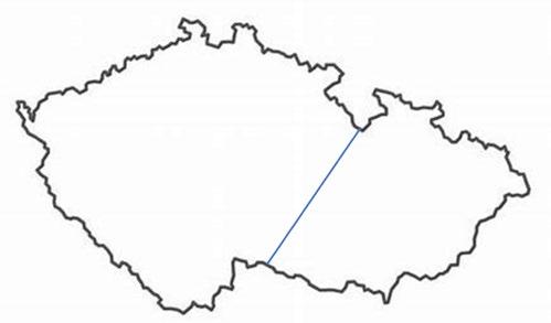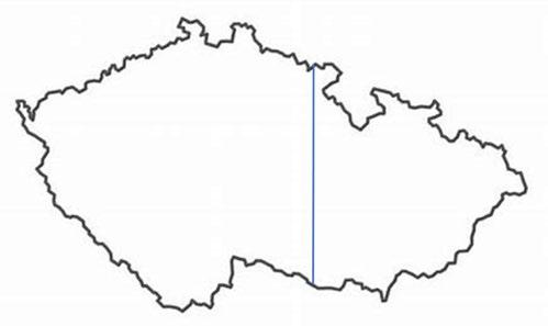 Přesnější, ale stále intuitivní je představa, že hranice směřuje od západnějšího bodu na jihu k východnějšímu bodu na severu. Kdyby linie byla ještě trochu zvlněná, působila by docela věrohodně. Během jednoho semináře (týkal se trochu jiných témat) jsem účastníkům rozdal slepou mapu ČR a požádal je, aby svoji představu hranice načrtli. Výsledek byl v průměru tento: