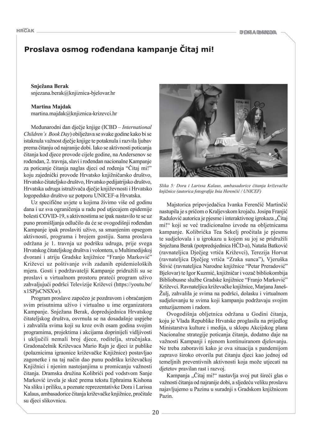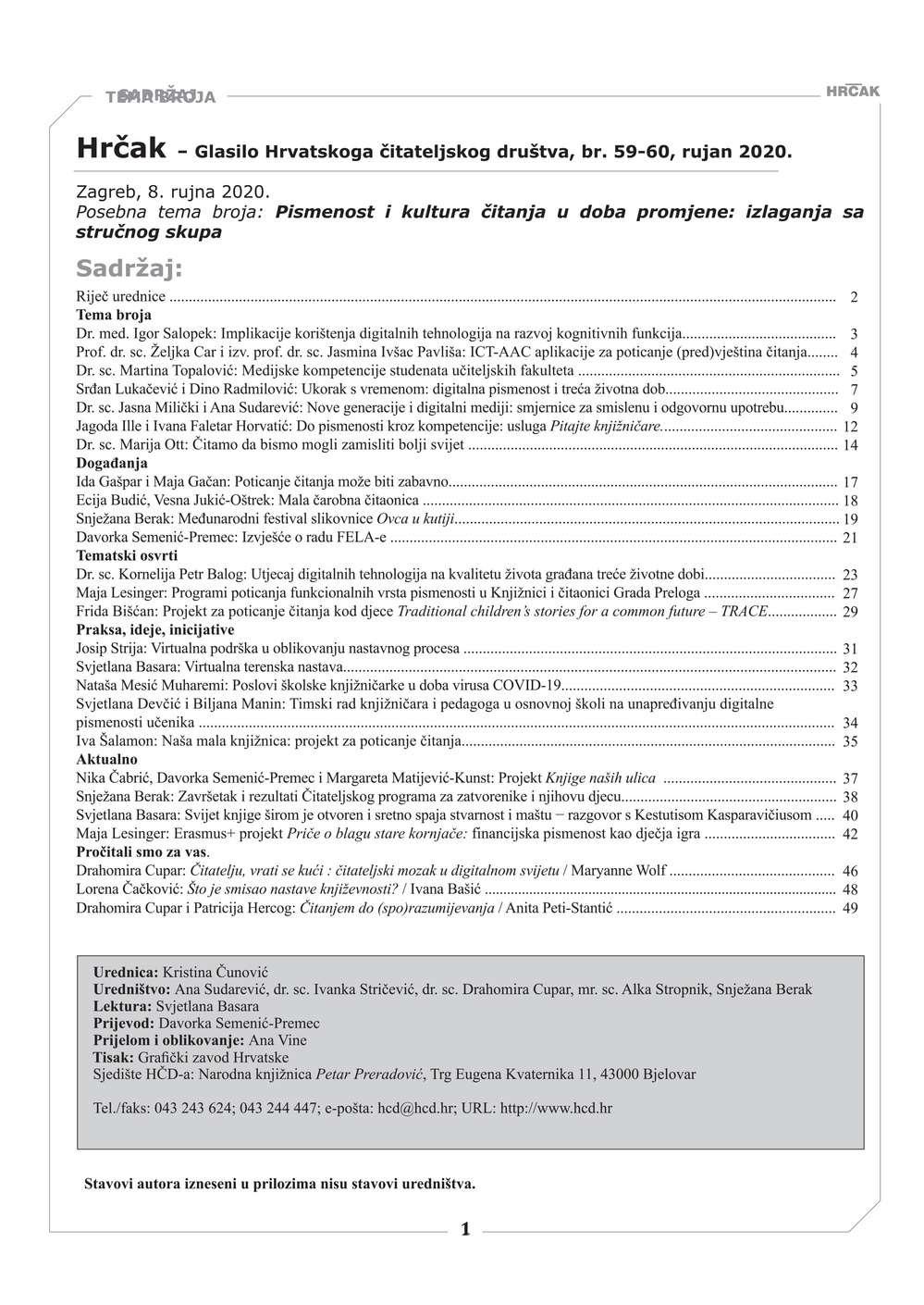 •NamrežnimstranicamaHrvatskogčitateljskogdruštvaudigitalnom oblikudostupnisvibrojeviHrčka: http://hcd.hr/publikacije/hrcak/