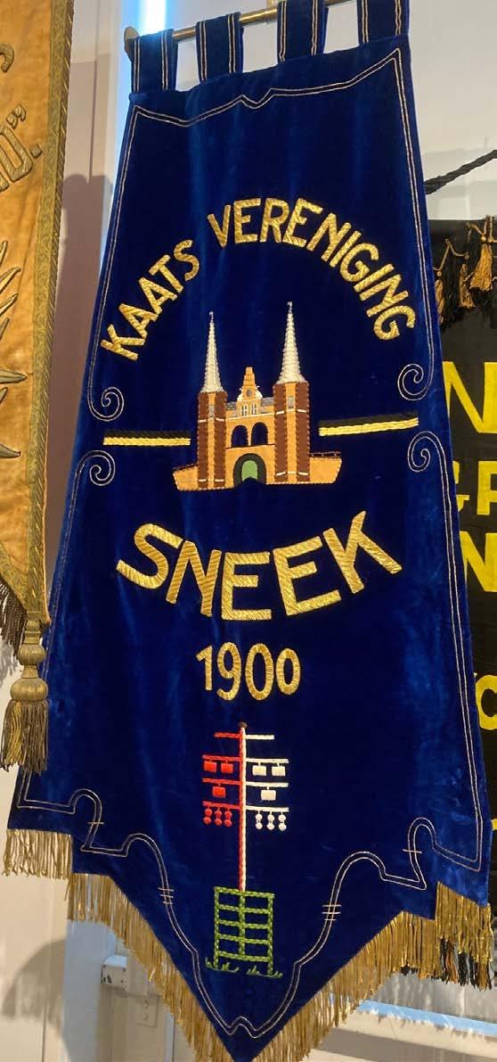 Het vaandel van de jubilerende kaatsvereniging Sneek. Foto: KV Sneek
