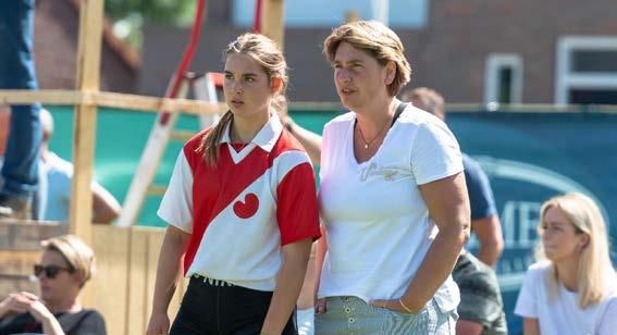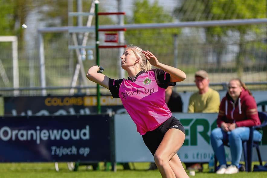 dwaande te hâlden mei in reorganisaasje op myn wurk en myn rol binnen ús Oranjeferiening en it jubileumfeest fan ús federaasje hjirre’’, leit Sarie fuort út en ferfolget: ,,Sa rjochting oktober, novimber ha’k myn nije tiim wol op ‘e rit en is myn oare bestjoerswurk ek hast ta in ein kaam. Witst, ik ha altyd sjoen hoefolle oft der foar ús regele wurde moast as wy ergens te keatsen kamen. Oant 1998 ha’k keatst. Wy sieten doedestiids al sûnt ús fjirtjinde yn de haadklasse, doe hie ik dus al rom fjirtjin jier alle simmers it hiele sirkwy meidraaid en wie it tiid foar wat oars.