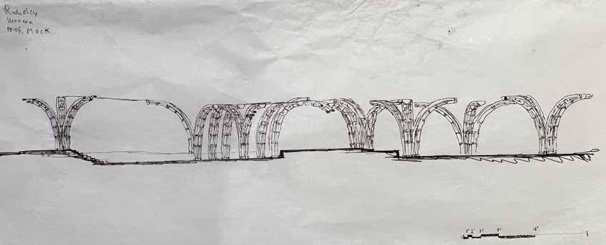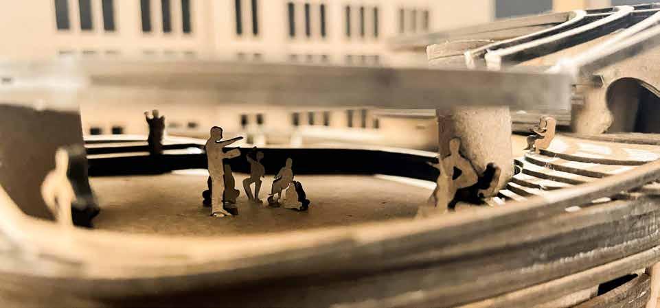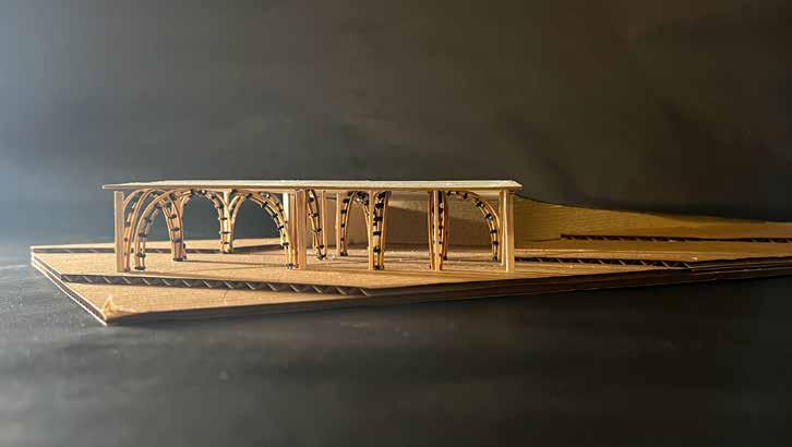 These modular systems express the materiality in real application and a demonstration of the final iteration. This iteration will situate the buildings and pivot towards the typology of the buildings The modular system is a 1/8 scale model of the original 180 inch high column.
