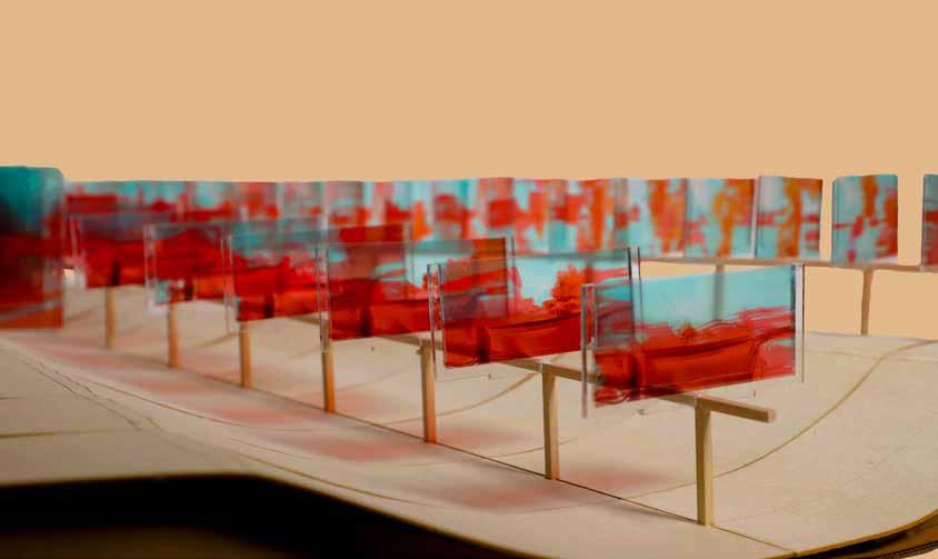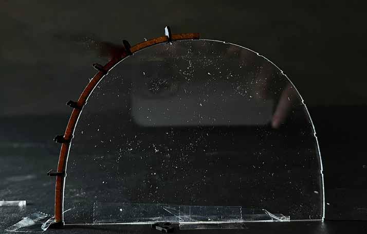 The tectonics of the glass is to design a synthetic structure and performative skin. With thinking of the relationship between structure and skin as occupying a position at, or on both sides of, a boundary or threshold within the concept. The idea is for these skins to interact with, and supplement, the structural system. The skin is a notched glass that is braced between the columns middle rig.