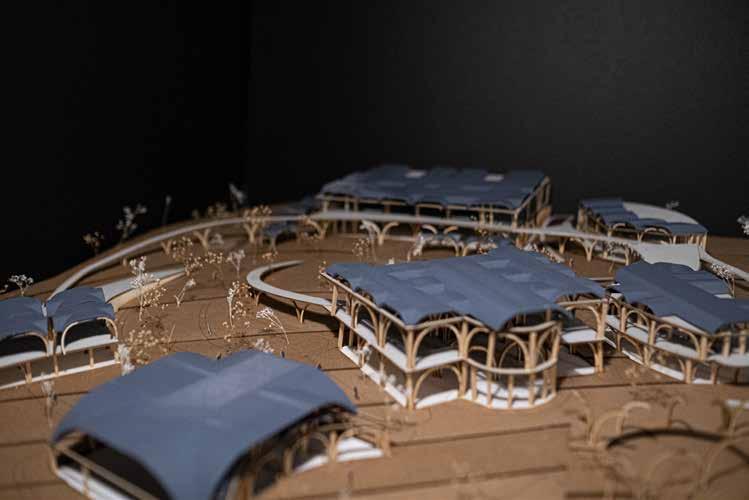 The practical nature of the buildings wanted to implement moments for equitable accessibility for the public, notifying the disabilities of everyone. The ramps along the building are to create visual experiences of the campus and engage with it. Using the modular system and concept drawing, the fabrication of a nuanced building was formulated with the employment of the tectonics, skin and program.